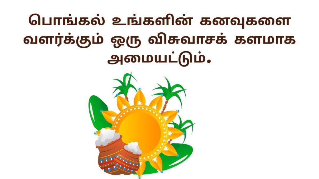 இந்த பதிவில் பகிரப்பட்டுள்ள Pongal Wishes in Tamil Words உங்கள் ஹர்வெஸ்ட் பண்டிகையை மேலும் சிறப்பாக மாற்றும் என்று நம்புகிறோம். உழைப்பையும் ஒற்றுமையையும் கொண்டாடும் இந்த பொங்கல், உங்கள் வாழ்க்கையில் மகிழ்ச்சியும் செழிப்பும் நிரம்பியதாக அமையட்டும். இனிமையான வார்த்தைகள் உங்கள் அன்பையும் ஆசிகளையும் عزیزோருடன் பகிர ஒரு அழகான வழியாக அமைக்கும். இனிய பொங்கல் நல்வாழ்த்துகள்!