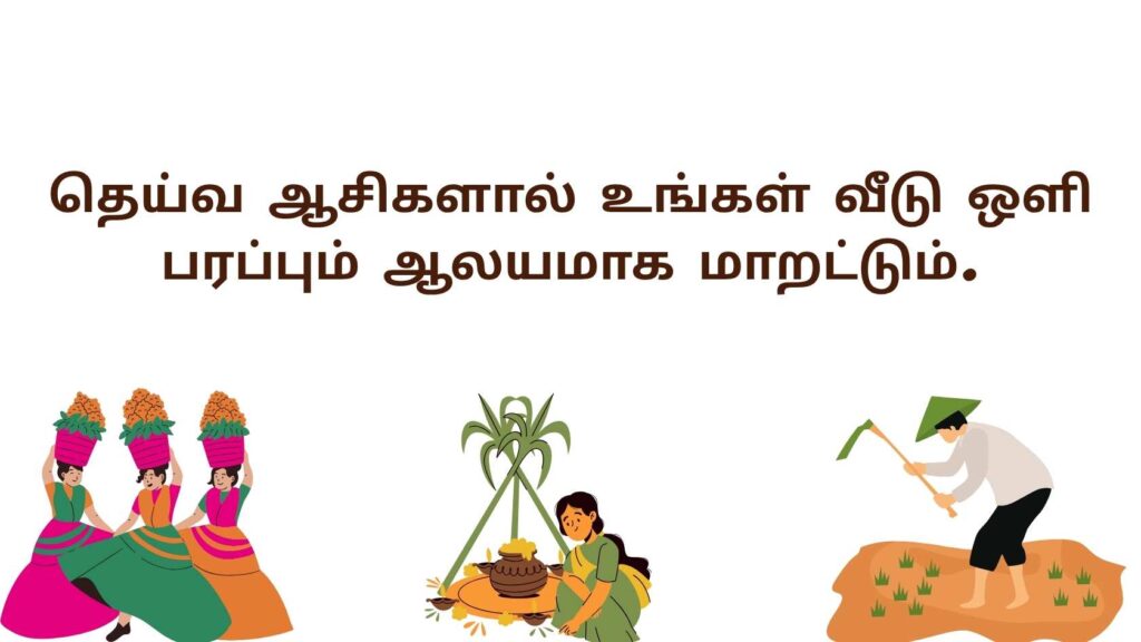 பொங்கல் பண்டிகை உங்களின் வாழ்க்கையில் தெய்வீக ஆசிகளால் நிறைந்த அமைதி, மகிழ்ச்சி, ஆரோக்கியம், செழிப்பு என அனைத்தையும் கொடுத்து, உங்கள் எதிர்காலம் ஒளிரட்டும்!