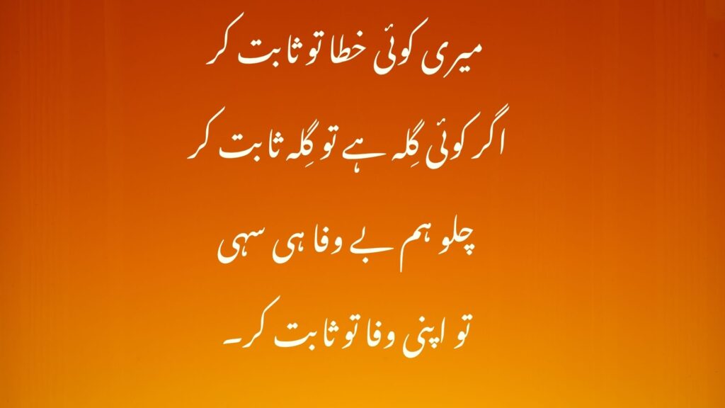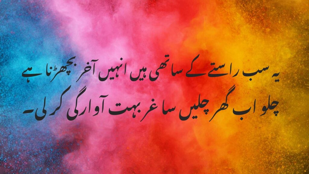 In the end, 2 line sad poetry in Urdu is not just about collecting words. It helps us express feelings that are hard to say out loud. These poems let us share our pain and think about our emotions. They also remind us that we are not alone. Sad poetry connects us to our culture and gives us a creative way to show our feelings to others, especially through text copy paste so you can easily share beautiful poetry on social media and with friends. Whether you use these poems to feel better, express yourself, or remember life’s sad moments, Urdu sad poetry is always there to comfort and support you through tough times.